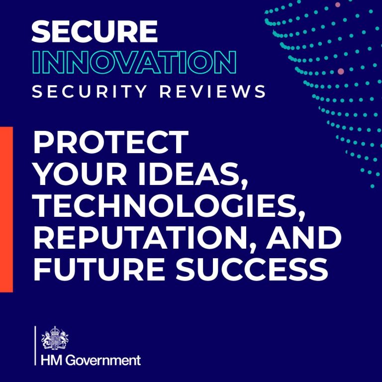 The Security Review scheme provides early-stage innovative companies holistic and actionable protective security advice to support them to protect their IP, looking at the company’s approach to protective security governance, risk and incident management, security culture, cyber security, and supply chains and partnerships.